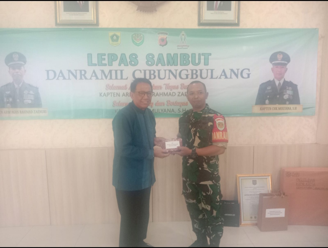 Selanjutnya Camat Cibungbulang berterima kasih kepada Danramil lama Kapten Agus RZ atas kerja samanya selama ini